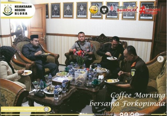 Pada hari Senin tanggal 14 November 2022 pukul 07.30 s.d 08.00 Wib yang bertempat di Ruang Pertemuan Kepala Kejaksaan Negeri Blora telah dilaksanakan Kegiatan Coffee Morning bersama Forkopimda Blora dilanjutkan sarapan pagi.
