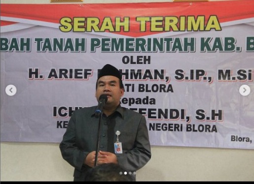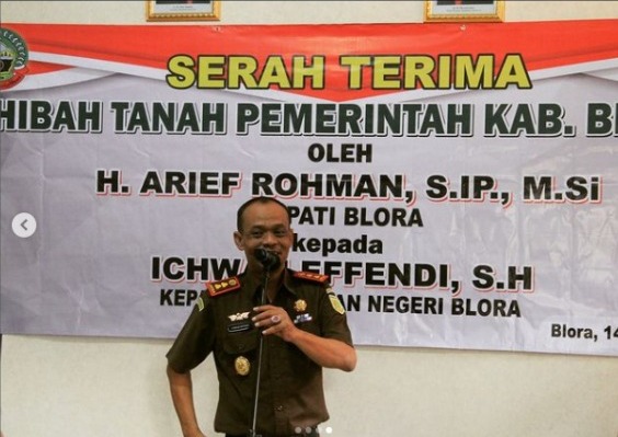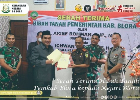 Pada hari Senin tanggal 14 November 2022 pukul 08.30 Wib yang bertempat di Ruang Pertemuan Kepala Kejaksaan Negeri Blora telah dilaksanakan Kegiatan Serah Terima Hibah Tanah Pemerintah Kabupaten Blora Kepada Kejaksaan Negeri Blora yang diserahkan oleh Bupati Blora (H Arief Rohman, SIP, Msi) Kepada Kepala Kejaksaan Negeri Blora (Ichwan Effendi, S.H)