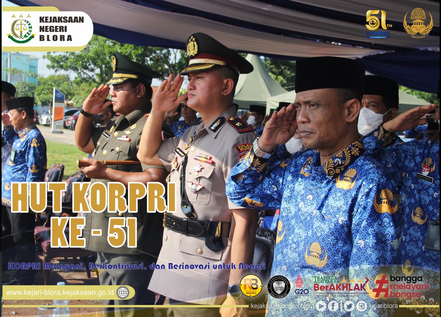 Pada hari Selasa, tanggal 29 November 2022 pukul 07.45 s.d 08.20 WIB di Lapangan Kridosono Kabupaten Blora telah dilaksanakan Upacara Peringatan HUT KORPRI ke-51 tahun 2022 dengan tema “Korpri Melayani, Berkontribusi dan Berinovasi untuk Negeri” Tingkat Kabupaten Blora sebagai Irup Bupati Blora (H. Arief Rohman, S.IP., M.Si.) yang diikuti ± 250 orang