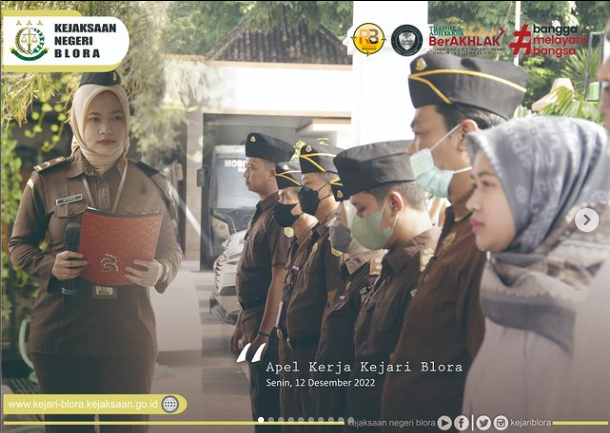 Uncategorized Kegiatan Apel Kerja Kejari Blora Senin 12 Desember 2022 admin December 12, 2022 1 min read Lihat postingan ini di Instagram Sebuah kiriman dibagikan oleh Kejaksaan Negeri Blora (@kejariblora) Continue Reading Previous Previous post: Kirab Budaya Dalam Rangka Memperingati Hari Jadi Kabupaten Blora Ke – 273Next Next post: Bimbingan Teknis Pengelolaan Kinerja Pegawai ASN Tahun 2022, Sosialisasi Kode Etik dan Peraturan Disiplin Pegawai di lingkungan Kejaksaan RI Leave a Reply Cancel replyYour email address will not be published. Required fields are marked *Comment * Name * Email * Website Save my name, email, and website in this browser for the next time I comment. Related News Penandatanganan Perjanjian Kerja Sama (MoU) dan Sosialisasi Bidang Perdata dan Tata Usaha Negara antara PT Blora Patragas Hulu (Perseroda) dengan Kejaksaan Negeri Blora Penandatanganan Perjanjian Kerja Sama (MoU) dan Sosialisasi Bidang Perdata dan Tata Usaha Negara antara PT Blora Patragas Hulu (Perseroda) dengan Kejaksaan Negeri Blora April 17, 2026 JAKSA MASUK SEKOLAH SMP N 1 JIKEN JAKSA MASUK SEKOLAH SMP N 1 JIKEN April 17, 2026