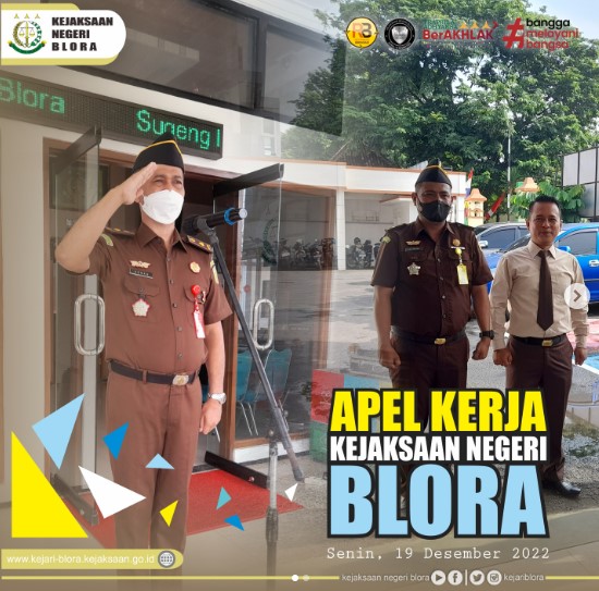 Uncategorized Kegiatan Apel Kerja Kejari Blora admin December 19, 2022 1 min read Lihat postingan ini di Instagram Sebuah kiriman dibagikan oleh Kejaksaan Negeri Blora (@kejariblora) Continue Reading Previous Previous post: Sosialisasi Tugas Dan Kewenangan Kejaksaan Di Bidang Perdata dan Tata Usaha Negara oleh Kepala Kejaksaan Tinggi Jawa Tengah Dr.I Made Suarnawan,SH.MH.Next Next post: Pendampingan Kegiatan Fisik Dana Alokasi Khusus Bidang Pendidikan Leave a Reply Cancel replyYour email address will not be published. Required fields are marked *Comment * Name * Email * Website Save my name, email, and website in this browser for the next time I comment. Related News Penandatanganan Perjanjian Kerja Sama (MoU) dan Sosialisasi Bidang Perdata dan Tata Usaha Negara antara PT Blora Patragas Hulu (Perseroda) dengan Kejaksaan Negeri Blora Penandatanganan Perjanjian Kerja Sama (MoU) dan Sosialisasi Bidang Perdata dan Tata Usaha Negara antara PT Blora Patragas Hulu (Perseroda) dengan Kejaksaan Negeri Blora April 17, 2026 JAKSA MASUK SEKOLAH SMP N 1 JIKEN JAKSA MASUK SEKOLAH SMP N 1 JIKEN April 17, 2026