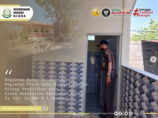 Uncategorized Pendampingan Kegiatan Fisik Dana Alokasi Khusus Bidang Pendidikan admin December 20, 2022 1 min read Lihat postingan ini di Instagram Sebuah kiriman dibagikan oleh Kejaksaan Negeri Blora (@kejariblora) Continue Reading Previous Previous post: Kegiatan Apel Kerja Kejari BloraNext Next post: Upacara Peringatan Hari Ibu ke – 94 tahun 2022 di Kejari Blora Leave a Reply Cancel replyYour email address will not be published. Required fields are marked *Comment * Name * Email * Website Save my name, email, and website in this browser for the next time I comment. Related News Penandatanganan Perjanjian Kerja Sama (MoU) dan Sosialisasi Bidang Perdata dan Tata Usaha Negara antara PT Blora Patragas Hulu (Perseroda) dengan Kejaksaan Negeri Blora Penandatanganan Perjanjian Kerja Sama (MoU) dan Sosialisasi Bidang Perdata dan Tata Usaha Negara antara PT Blora Patragas Hulu (Perseroda) dengan Kejaksaan Negeri Blora April 17, 2026 JAKSA MASUK SEKOLAH SMP N 1 JIKEN JAKSA MASUK SEKOLAH SMP N 1 JIKEN April 17, 2026