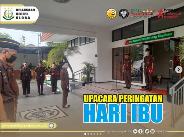 Uncategorized Upacara Peringatan Hari Ibu ke – 94 tahun 2022 di Kejari Blora admin December 22, 2022 1 min read Lihat postingan ini di Instagram Sebuah kiriman dibagikan oleh Kejaksaan Negeri Blora (@kejariblora) Continue Reading Previous Previous post: Pendampingan Kegiatan Fisik Dana Alokasi Khusus Bidang PendidikanNext Next post: Kepala Kejaksaan Negeri Blora dan Ibu Ketua Ikatan Adhyaksa Dharmakarini Daerah Blora Beserta Jajaran Mengucapkan Selamat memperingati HARI IBU 22 Desember 2022 Leave a Reply Cancel replyYour email address will not be published. Required fields are marked *Comment * Name * Email * Website Save my name, email, and website in this browser for the next time I comment. Related News Penandatanganan Perjanjian Kerja Sama (MoU) dan Sosialisasi Bidang Perdata dan Tata Usaha Negara antara PT Blora Patragas Hulu (Perseroda) dengan Kejaksaan Negeri Blora Penandatanganan Perjanjian Kerja Sama (MoU) dan Sosialisasi Bidang Perdata dan Tata Usaha Negara antara PT Blora Patragas Hulu (Perseroda) dengan Kejaksaan Negeri Blora April 17, 2026 JAKSA MASUK SEKOLAH SMP N 1 JIKEN JAKSA MASUK SEKOLAH SMP N 1 JIKEN April 17, 2026