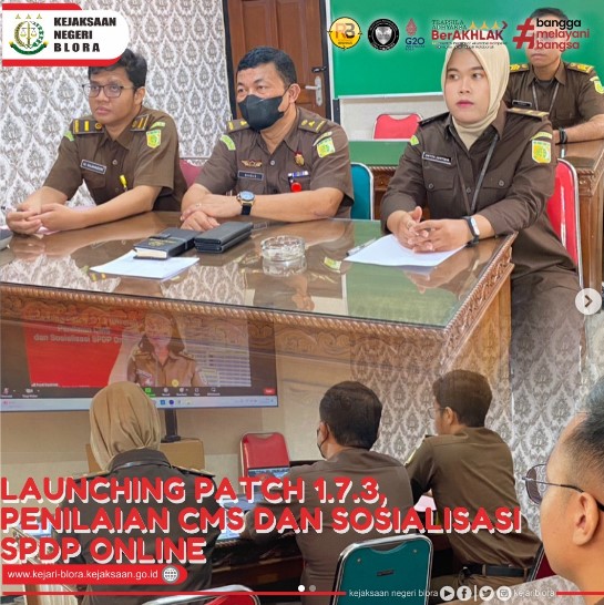 Uncategorized Launching Patch 1.7.3, Penilaian CMS dan Sosialisasi SPDP Online secara daring admin January 12, 2023 1 min read Lihat postingan ini di Instagram Sebuah kiriman dibagikan oleh Kejaksaan Negeri Blora (@kejariblora) Continue Reading Previous Previous post: Kepala Kejaksaan Negeri Blora ( Ichwan Effendi, S.H. M.H ) memberikan apresiasi kepada seluruh jajaran kejari blora atas pencapaian kinerja yang di raih oleh jajaran kejari blora periode bulan november 2022 yang menyandang peringkat 1 se-jawa tengah.Next Next post: Kegiatan Jaksa Masuk Sekolah dan Kampus Leave a Reply Cancel replyYour email address will not be published. Required fields are marked *Comment * Name * Email * Website Save my name, email, and website in this browser for the next time I comment. Related News Penerangan Hukum kepada Kelompok Kerja Madrasah Aliyah dan Madrasah Tsanawiyah pada Kemenag Kab. Blora Penerangan Hukum kepada Kelompok Kerja Madrasah Aliyah dan Madrasah Tsanawiyah pada Kemenag Kab. Blora April 23, 2026 Kegiatan Roadshow Wakil Menteri Kesehatan terkait Active Case Finding (ACF) Tuberkulosis (TB) serta kegiatan Tracing TB yang terintegrasi dengan Cek Kesehatan Gratis (CKG) Kegiatan Roadshow Wakil Menteri Kesehatan terkait Active Case Finding (ACF) Tuberkulosis (TB) serta kegiatan Tracing TB yang terintegrasi dengan Cek Kesehatan Gratis (CKG) April 23, 2026