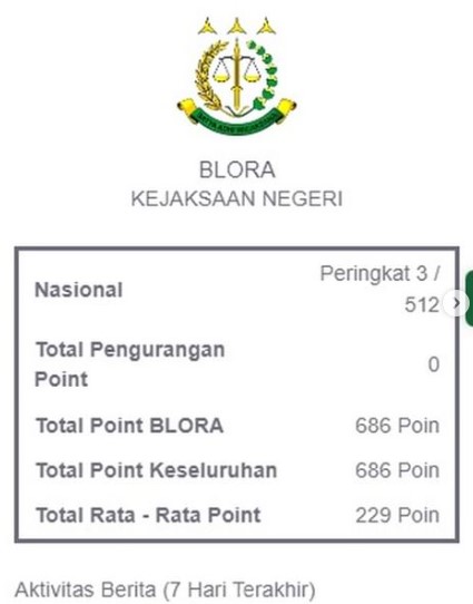 Uncategorized Pencapaian Bidang Intelijen di Aplikasi SIACC admin January 12, 2023 1 min read Lihat postingan ini di Instagram Sebuah kiriman dibagikan oleh Kejaksaan Negeri Blora (@kejariblora) Continue Reading Previous Previous post: Pelaksanaan Lelang Barang Milik Negara Kejaksaan Negeri BloraNext Next post: Kejaksaan Negeri Blora Melaksanakan Kegiatan Tahap II (Penyerahan Tersangka dan Barang Bukti) Perkara Perlindungan Anak Leave a Reply Cancel replyYour email address will not be published. Required fields are marked *Comment * Name * Email * Website Save my name, email, and website in this browser for the next time I comment. Related News Penerangan Hukum kepada Kelompok Kerja Madrasah Aliyah dan Madrasah Tsanawiyah pada Kemenag Kab. Blora Penerangan Hukum kepada Kelompok Kerja Madrasah Aliyah dan Madrasah Tsanawiyah pada Kemenag Kab. Blora April 23, 2026 Kegiatan Roadshow Wakil Menteri Kesehatan terkait Active Case Finding (ACF) Tuberkulosis (TB) serta kegiatan Tracing TB yang terintegrasi dengan Cek Kesehatan Gratis (CKG) Kegiatan Roadshow Wakil Menteri Kesehatan terkait Active Case Finding (ACF) Tuberkulosis (TB) serta kegiatan Tracing TB yang terintegrasi dengan Cek Kesehatan Gratis (CKG) April 23, 2026
