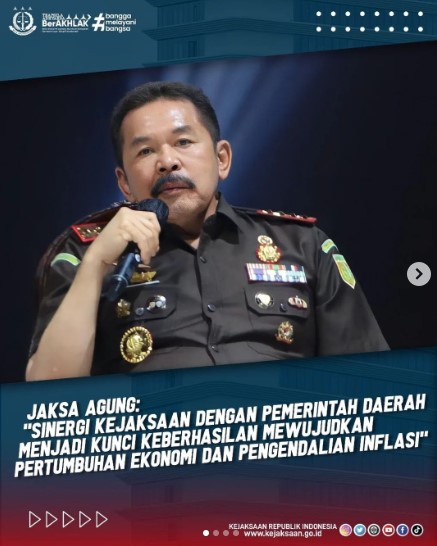 Uncategorized Jaksa Agung ST Burhanuddin memberikan pengarahan mengenai “Peran Kejaksaan Dalam Mendukung Pertumbuhan Ekonomi dan Pengendalian Inflasi di Daerah” dalam Rapat Koordinasi Nasional (Rakornas) Kepala Daerah dan Forkopimda Tahun 2023 admin January 17, 2023 1 min read Lihat postingan ini di Instagram Sebuah kiriman dibagikan oleh Kejaksaan Negeri Blora (@kejariblora) Continue Reading Previous Previous post: Penyuluhan Hukum Jaksa Masuk Sekolah (JMS) Kejaksaan Negeri Blora di aula SMP N 1 Doplang Kec. Jati Kab. BloraNext Next post: ARAHAN PRESIDENUNTUK KEPALA DAERAHTAHUN 2023 Leave a Reply Cancel replyYour email address will not be published. Required fields are marked *Comment * Name * Email * Website Save my name, email, and website in this browser for the next time I comment. Related News Penerangan Hukum kepada Kelompok Kerja Madrasah Aliyah dan Madrasah Tsanawiyah pada Kemenag Kab. Blora Penerangan Hukum kepada Kelompok Kerja Madrasah Aliyah dan Madrasah Tsanawiyah pada Kemenag Kab. Blora April 23, 2026 Kegiatan Roadshow Wakil Menteri Kesehatan terkait Active Case Finding (ACF) Tuberkulosis (TB) serta kegiatan Tracing TB yang terintegrasi dengan Cek Kesehatan Gratis (CKG) Kegiatan Roadshow Wakil Menteri Kesehatan terkait Active Case Finding (ACF) Tuberkulosis (TB) serta kegiatan Tracing TB yang terintegrasi dengan Cek Kesehatan Gratis (CKG) April 23, 2026