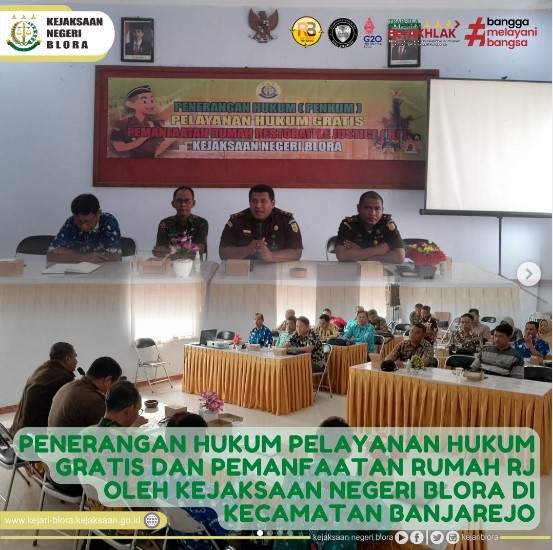 Uncategorized Penerangan Hukum, Pelayanan Hukum Gratis dan Pemanfaatan Rumah RJ oleh Kejaksaan Negeri Blora admin January 19, 2023 1 min read Lihat postingan ini di Instagram Sebuah kiriman dibagikan oleh Kejaksaan Negeri Blora (@kejariblora) Continue Reading Previous Previous post: Penyuluhan Hukum Jaksa Masuk Sekolah (JMS) Kejaksaan Negeri Blora di aula SMP N 1 Kedungtuban Kec. Kedungtuban Kab. BloraNext Next post: Laporan Kinerja Kejaksaan Negeri Blora 2022 Leave a Reply Cancel replyYour email address will not be published. Required fields are marked *Comment * Name * Email * Website Save my name, email, and website in this browser for the next time I comment. Related News Penandatanganan Perjanjian Kerja Sama (MoU) dan Sosialisasi Bidang Perdata dan Tata Usaha Negara antara PT Blora Patragas Hulu (Perseroda) dengan Kejaksaan Negeri Blora Penandatanganan Perjanjian Kerja Sama (MoU) dan Sosialisasi Bidang Perdata dan Tata Usaha Negara antara PT Blora Patragas Hulu (Perseroda) dengan Kejaksaan Negeri Blora April 17, 2026 JAKSA MASUK SEKOLAH SMP N 1 JIKEN JAKSA MASUK SEKOLAH SMP N 1 JIKEN April 17, 2026