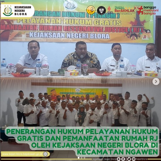 Uncategorized Penerangan Hukum, Pelayanan Hukum Gratis dan Pemanfaatan Rumah RJ oleh Kejaksaan Negeri Blora di Aula Kecamatan Ngawen admin January 25, 2023 1 min read Lihat postingan ini di Instagram Sebuah kiriman dibagikan oleh Kejaksaan Negeri Blora (@kejariblora) Continue Reading Previous Previous post: Pembahasan dan Penandatanganan Perjanjian Kerja Sama antara BPJS Kesehatan KC Pati dengan Kejaksaan Negeri Blora di bidang perdata dan tata usaha NegaraNext Next post: Penerangan Hukum, Pelayanan Hukum Gratis dan Pemanfaatan Rumah RJ oleh Kejaksaan Negeri Blora di Aula Kecamatan Kunduran Leave a Reply Cancel replyYour email address will not be published. Required fields are marked *Comment * Name * Email * Website Save my name, email, and website in this browser for the next time I comment. Related News Penerangan Hukum kepada Kelompok Kerja Madrasah Aliyah dan Madrasah Tsanawiyah pada Kemenag Kab. Blora Penerangan Hukum kepada Kelompok Kerja Madrasah Aliyah dan Madrasah Tsanawiyah pada Kemenag Kab. Blora April 23, 2026 Kegiatan Roadshow Wakil Menteri Kesehatan terkait Active Case Finding (ACF) Tuberkulosis (TB) serta kegiatan Tracing TB yang terintegrasi dengan Cek Kesehatan Gratis (CKG) Kegiatan Roadshow Wakil Menteri Kesehatan terkait Active Case Finding (ACF) Tuberkulosis (TB) serta kegiatan Tracing TB yang terintegrasi dengan Cek Kesehatan Gratis (CKG) April 23, 2026