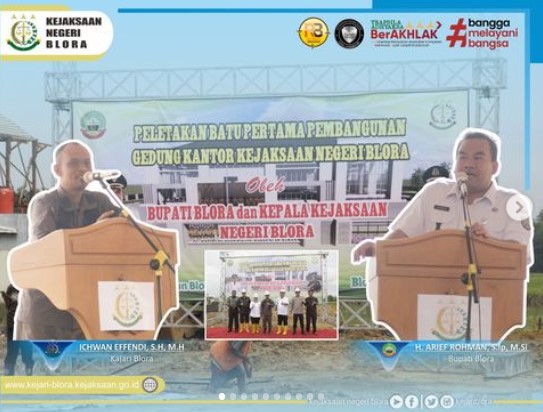 Uncategorized Acara Peletakan Batu Pertama Pembangunan Gedung Kantor Kejaksaan Negeri Blora admin February 8, 2023 1 min read Lihat postingan ini di Instagram Sebuah kiriman dibagikan oleh Kejaksaan Negeri Blora (@kejariblora) Continue Reading Previous Previous post: Kegiatan Penyuluhan Hukum Kepada Musyawarah Kerja Kepala Sekolah (MKKS) Se Korwil II Kab. Blora di aula SMP N 1 JapahNext Next post: Penyuluhan Hukum dan Sosialisasi dalam Pencegahan Tindak Pidana Korupsi dalam Pengelolaan Keuangan RSUD dr. R. Soetijono Blora Leave a Reply Cancel replyYour email address will not be published. Required fields are marked *Comment * Name * Email * Website Save my name, email, and website in this browser for the next time I comment. Related News Penerangan Hukum kepada Kelompok Kerja Madrasah Aliyah dan Madrasah Tsanawiyah pada Kemenag Kab. Blora Penerangan Hukum kepada Kelompok Kerja Madrasah Aliyah dan Madrasah Tsanawiyah pada Kemenag Kab. Blora April 23, 2026 Kegiatan Roadshow Wakil Menteri Kesehatan terkait Active Case Finding (ACF) Tuberkulosis (TB) serta kegiatan Tracing TB yang terintegrasi dengan Cek Kesehatan Gratis (CKG) Kegiatan Roadshow Wakil Menteri Kesehatan terkait Active Case Finding (ACF) Tuberkulosis (TB) serta kegiatan Tracing TB yang terintegrasi dengan Cek Kesehatan Gratis (CKG) April 23, 2026
