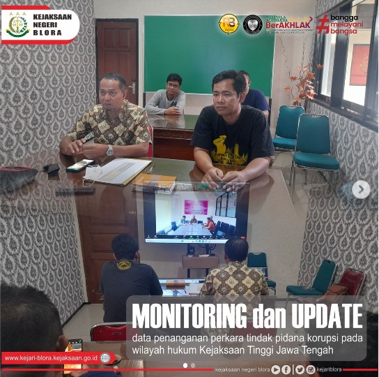 Uncategorized Kegiatan Monitoring dan Update data penanganan perkara tindak pidana korupsi pada wilayah hukum Kejaksaan Tinggi Jawa Tengah Secara Online admin March 17, 2023 1 min read Lihat postingan ini di Instagram Sebuah kiriman dibagikan oleh Kejaksaan Negeri Blora (@kejariblora) Continue Reading Previous Previous post: Kegiatan Senam Bersama Jumat Sehat yang Diikuti oleh Pegawai Kejari BloraNext Next post: Kepala Kejaksaan Negeri Blora beserta jajaran mengucapkan Selamat Hari Ulang Tahun Ikatan Hakim Indonesia (IKAHI) Ke – 70th Leave a Reply Cancel replyYour email address will not be published. Required fields are marked *Comment * Name * Email * Website Save my name, email, and website in this browser for the next time I comment. Related News Penerangan Hukum kepada Kelompok Kerja Madrasah Aliyah dan Madrasah Tsanawiyah pada Kemenag Kab. Blora Penerangan Hukum kepada Kelompok Kerja Madrasah Aliyah dan Madrasah Tsanawiyah pada Kemenag Kab. Blora April 23, 2026 Kegiatan Roadshow Wakil Menteri Kesehatan terkait Active Case Finding (ACF) Tuberkulosis (TB) serta kegiatan Tracing TB yang terintegrasi dengan Cek Kesehatan Gratis (CKG) Kegiatan Roadshow Wakil Menteri Kesehatan terkait Active Case Finding (ACF) Tuberkulosis (TB) serta kegiatan Tracing TB yang terintegrasi dengan Cek Kesehatan Gratis (CKG) April 23, 2026