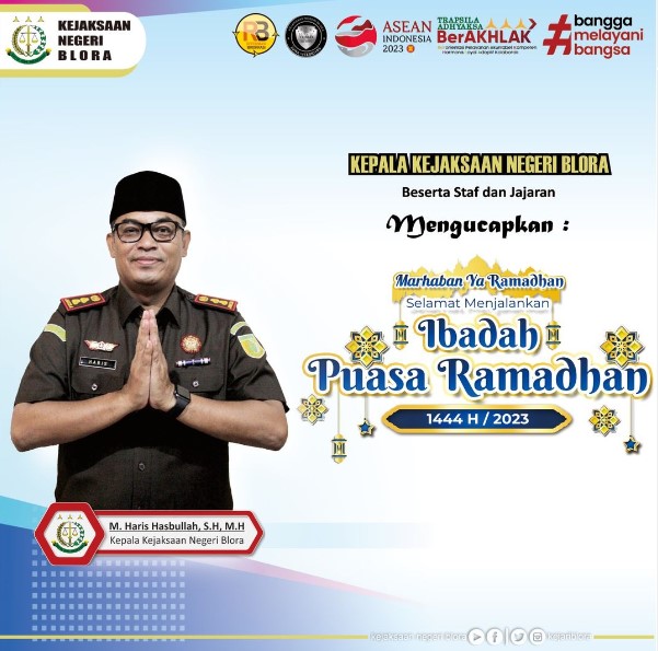 Uncategorized Kepala Kejaksaan Negeri Blora beserta Staff dan Jajaran mengucapkan Selamat Menjalankan Ibadah Puasa Ramadhan 1444 H / 2023 admin March 23, 2023 1 min read Lihat postingan ini di Instagram Sebuah kiriman dibagikan oleh Kejaksaan Negeri Blora (@kejariblora) Continue Reading Previous Previous post: Kepala Kejaksaan Negeri Blora beserta Staf dan Jajaran,Mengucapkan :”Selamat Hari Raya Nyepi tahun 2023 Saka 1945″ Rahajeng Rahina Nyepi.Next Next post: Kejaksaan Berhasil Konsisten Menjaga Komitmennya Dalam Memberantas Korupsi Leave a Reply Cancel replyYour email address will not be published. Required fields are marked *Comment * Name * Email * Website Save my name, email, and website in this browser for the next time I comment. Related News Penerangan Hukum kepada Kelompok Kerja Madrasah Aliyah dan Madrasah Tsanawiyah pada Kemenag Kab. Blora Penerangan Hukum kepada Kelompok Kerja Madrasah Aliyah dan Madrasah Tsanawiyah pada Kemenag Kab. Blora April 23, 2026 Kegiatan Roadshow Wakil Menteri Kesehatan terkait Active Case Finding (ACF) Tuberkulosis (TB) serta kegiatan Tracing TB yang terintegrasi dengan Cek Kesehatan Gratis (CKG) Kegiatan Roadshow Wakil Menteri Kesehatan terkait Active Case Finding (ACF) Tuberkulosis (TB) serta kegiatan Tracing TB yang terintegrasi dengan Cek Kesehatan Gratis (CKG) April 23, 2026