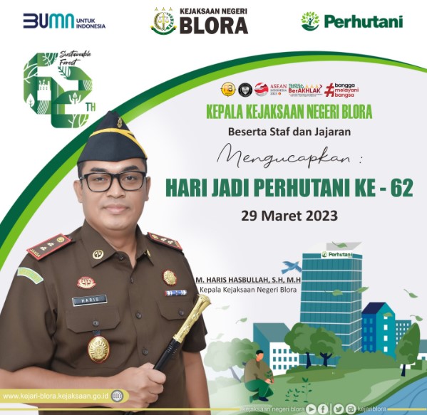 Uncategorized Kepala Kejaksaan Negeri Blora beserta staf dan jajaran Mengucapkan: Selamat HARI JADI PERHUTANI Ke – 62 29 Maret 2923 “Semoga Perhutani Semakin Jaya”. admin March 29, 2023 1 min read Lihat postingan ini di Instagram Sebuah kiriman dibagikan oleh Kejaksaan Negeri Blora (@kejariblora) Continue Reading Previous Previous post: Ramadhan penuh berkah✨ Ayo bersedekah 😇Next Next post: “Sesungguhnya bagian terindah dalam hidup ini adalah saat kita bisa berbagi hal positif, kebaikan, dan kebahagiaan dengan orang lain.” Leave a Reply Cancel replyYour email address will not be published. Required fields are marked *Comment * Name * Email * Website Save my name, email, and website in this browser for the next time I comment. Related News Penerangan Hukum kepada Kelompok Kerja Madrasah Aliyah dan Madrasah Tsanawiyah pada Kemenag Kab. Blora Penerangan Hukum kepada Kelompok Kerja Madrasah Aliyah dan Madrasah Tsanawiyah pada Kemenag Kab. Blora April 23, 2026 Kegiatan Roadshow Wakil Menteri Kesehatan terkait Active Case Finding (ACF) Tuberkulosis (TB) serta kegiatan Tracing TB yang terintegrasi dengan Cek Kesehatan Gratis (CKG) Kegiatan Roadshow Wakil Menteri Kesehatan terkait Active Case Finding (ACF) Tuberkulosis (TB) serta kegiatan Tracing TB yang terintegrasi dengan Cek Kesehatan Gratis (CKG) April 23, 2026