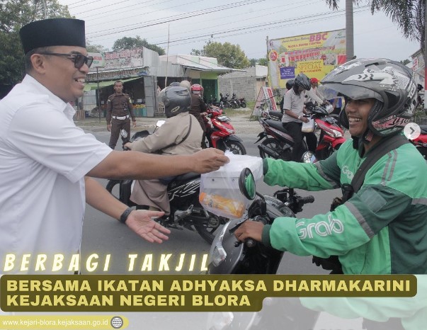 Uncategorized Kegiatan Berbagi Takjil Gratis Bersama Ikatan Adhyaksa Dharmakarini Daerah Blora admin March 30, 2023 1 min read Lihat postingan ini di Instagram Sebuah kiriman dibagikan oleh Kejaksaan Negeri Blora (@kejariblora) Continue Reading Previous Previous post: “Setiap amal kebaikan bernilai sedekah.”Next Next post: DAFTAR PENCARIAN ORANG ( DPO )Kejaksaan Negeri Blora, Leave a Reply Cancel replyYour email address will not be published. Required fields are marked *Comment * Name * Email * Website Save my name, email, and website in this browser for the next time I comment. Related News Penerangan Hukum kepada Kelompok Kerja Madrasah Aliyah dan Madrasah Tsanawiyah pada Kemenag Kab. Blora Penerangan Hukum kepada Kelompok Kerja Madrasah Aliyah dan Madrasah Tsanawiyah pada Kemenag Kab. Blora April 23, 2026 Kegiatan Roadshow Wakil Menteri Kesehatan terkait Active Case Finding (ACF) Tuberkulosis (TB) serta kegiatan Tracing TB yang terintegrasi dengan Cek Kesehatan Gratis (CKG) Kegiatan Roadshow Wakil Menteri Kesehatan terkait Active Case Finding (ACF) Tuberkulosis (TB) serta kegiatan Tracing TB yang terintegrasi dengan Cek Kesehatan Gratis (CKG) April 23, 2026