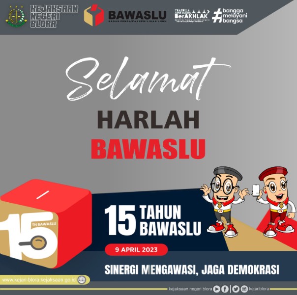 Uncategorized Selamat Hari Lahir Bawaslu ke-15 tahun09 April 2023 admin April 9, 2023 1 min read Lihat postingan ini di Instagram Sebuah kiriman dibagikan oleh Kejaksaan Negeri Blora (@kejariblora) Continue Reading Previous Previous post: Kepada Seluruh Masyarakat Kabupaten Blora, Agar selalu Waspada Terhadap Modus Penipuian yang Mengatas Namakan Pejabat / Pegawai pada Kejaksaan Negeri Blora.Next Next post: Sosialisasi mengenai Pengelolaan Website Pelaksanaan Rencana Aksi Nasional serta Penggunaan Aplikasi SP4N-Lapor secara daring Leave a Reply Cancel replyYour email address will not be published. Required fields are marked *Comment * Name * Email * Website Save my name, email, and website in this browser for the next time I comment. Related News Penerangan Hukum kepada Kelompok Kerja Madrasah Aliyah dan Madrasah Tsanawiyah pada Kemenag Kab. Blora Penerangan Hukum kepada Kelompok Kerja Madrasah Aliyah dan Madrasah Tsanawiyah pada Kemenag Kab. Blora April 23, 2026 Kegiatan Roadshow Wakil Menteri Kesehatan terkait Active Case Finding (ACF) Tuberkulosis (TB) serta kegiatan Tracing TB yang terintegrasi dengan Cek Kesehatan Gratis (CKG) Kegiatan Roadshow Wakil Menteri Kesehatan terkait Active Case Finding (ACF) Tuberkulosis (TB) serta kegiatan Tracing TB yang terintegrasi dengan Cek Kesehatan Gratis (CKG) April 23, 2026