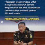 Uncategorized Jaksa Agung Tidak Akan Memberi Toleransi Kepada Oknum yang Menyalahgunakan Kewenangannya Sebagai Jaksa admin May 16, 2023 1 min read Lihat postingan ini di Instagram Sebuah kiriman dibagikan oleh Kejaksaan Negeri Blora (@kejariblora) Continue Reading Previous Previous post: Kejaksaan telah menetapkan lima orang tersangka terkait kasus dugaan tindakan pidana korupsi penyediaan layanan infrastruktur 4G BTS KominfoNext Next post: Kegiatan Ekspose Permohonan Pendampingan Kegiatan Fisik Dana Alokasi Khusus Bidang Pendidikan pada Dinas Pendidikan Kab. Blora TA 2023 Leave a Reply Cancel replyYour email address will not be published. Required fields are marked *Comment * Name * Email * Website Save my name, email, and website in this browser for the next time I comment. Related News Penerangan Hukum kepada Kelompok Kerja Madrasah Aliyah dan Madrasah Tsanawiyah pada Kemenag Kab. Blora Penerangan Hukum kepada Kelompok Kerja Madrasah Aliyah dan Madrasah Tsanawiyah pada Kemenag Kab. Blora April 23, 2026 Kegiatan Roadshow Wakil Menteri Kesehatan terkait Active Case Finding (ACF) Tuberkulosis (TB) serta kegiatan Tracing TB yang terintegrasi dengan Cek Kesehatan Gratis (CKG) Kegiatan Roadshow Wakil Menteri Kesehatan terkait Active Case Finding (ACF) Tuberkulosis (TB) serta kegiatan Tracing TB yang terintegrasi dengan Cek Kesehatan Gratis (CKG) April 23, 2026