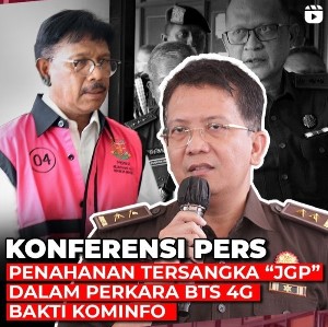 Uncategorized Konferensi Pers Penahanan Tersangka “JGP” Dalam Perkara BTS 4G BAKTI Kominfo admin May 19, 2023 1 min read Lihat postingan ini di Instagram Sebuah kiriman dibagikan oleh Kejaksaan Negeri Blora (@kejariblora) Continue Reading Previous Previous post: “JGP”, Menteri Komunikasi dan Informatioka RI Ditahan Tim Penyidik Kejaksaan AgungNext Next post: RAKORNAS PELAKSANAAN ANGGARAN 2023 Leave a Reply Cancel replyYour email address will not be published. Required fields are marked *Comment * Name * Email * Website Save my name, email, and website in this browser for the next time I comment. Related News Upacara Peringatan Hari Otonomi Daerah ke-30 Tahun 2026 Tingkat Kabupaten Blora dengan tema “Dengan Otonomi Daerah Kita Wujudkan Asta Cita.” Upacara Peringatan Hari Otonomi Daerah ke-30 Tahun 2026 Tingkat Kabupaten Blora dengan tema “Dengan Otonomi Daerah Kita Wujudkan Asta Cita.” April 27, 2026 Apel Pagi di Kejaksaan Negeri Blora yang dipimpin Kepala Sub Bagian Pembinaan selaku Penerima Apel Apel Pagi di Kejaksaan Negeri Blora yang dipimpin Kepala Sub Bagian Pembinaan selaku Penerima Apel April 27, 2026
