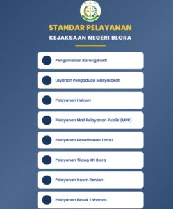 Standar Pelayanan Kejaksaan Negeri Blora SOP Standar pelayanan publik Kejaksaan Negeri Blora dapat dilihat...